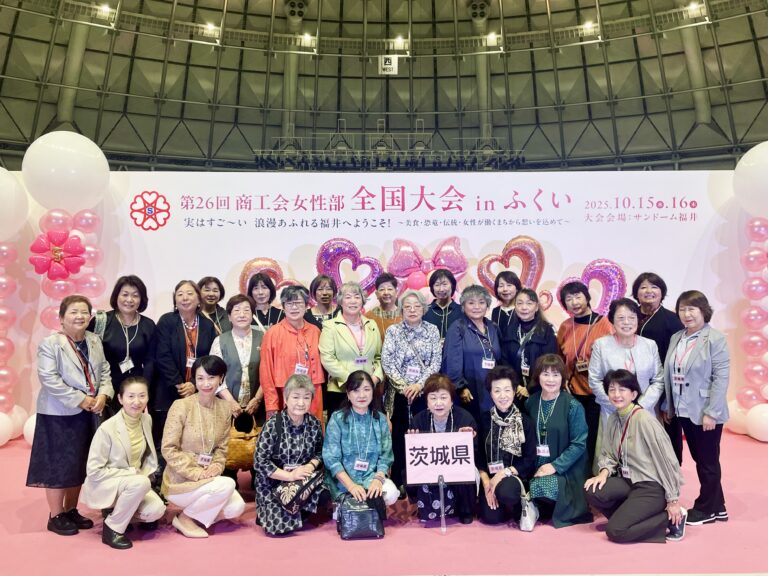 令和7年10月15日、福井県の「サンドーム福井」などを会場に開催された女性部全国大会inふくいに本県からは29名が参加した。 表彰の部では、茨城県商工会女性部連合会、常陸大宮市、坂東市、取手市商工会女性部が表彰を受けた。 〇女性部員増強運動(加入促進 […]